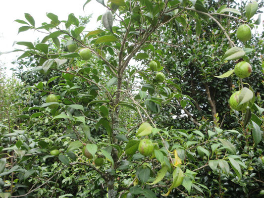今年は、椿の実の付きが良くたくさんの実が取れそうです。
