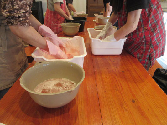 催されました。シルクのストールがやさしいピンク色に染まりました。