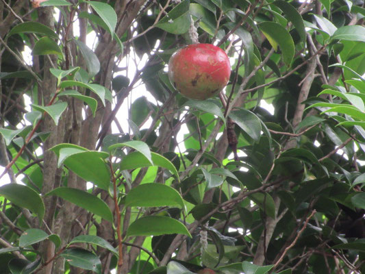 リンゴ椿が真っ赤な大きな実を付けています。