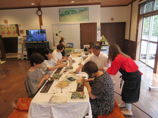 色々な種類の多肉植物を色や高さを考えながら配置し、一つの鉢に植えていく作業を皆さん楽しんでいらしゃいました。