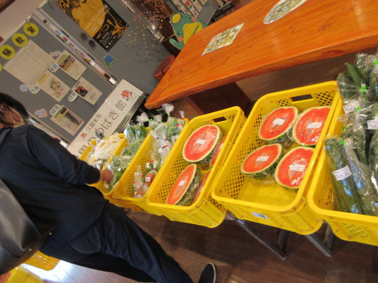 今日は、草野町の皆さんが育てたオクラ、スイカやなすびがお手頃価格で販売されていました。